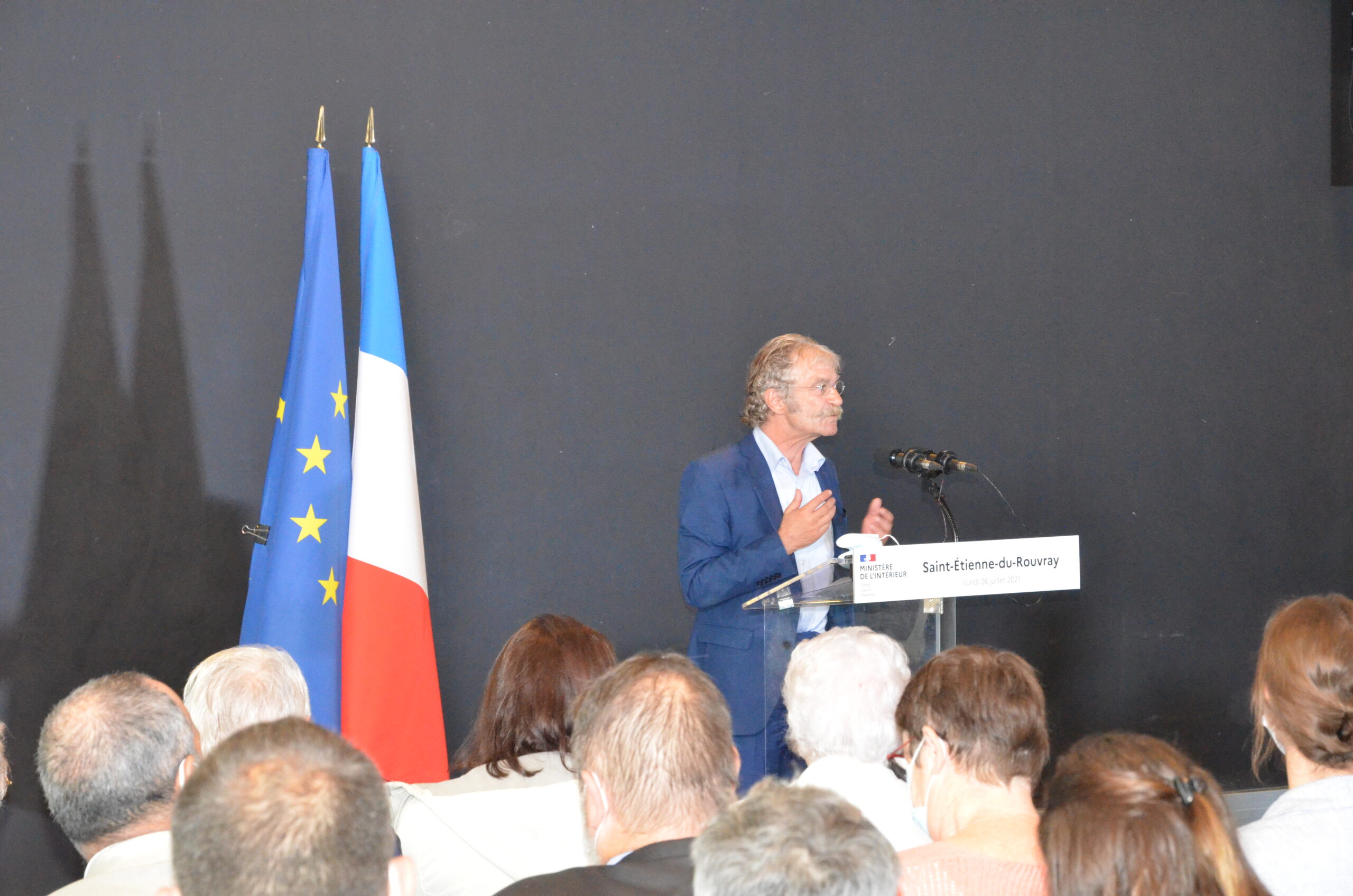 Dernier à prendre la parole lors de cet hommage, le ministre de l’Intérieur Gérald Darmanin vient pour la seconde fois « témoigner de toute la considération, de toute l’affection, que la France a pour cette commune de Saint-Étienne-du-Rouvray. Ici, le souvenir de Jacques Hamel est un souvenir de pardon. Souvenir d’un frère, d’un oncle, d’un citoyen engagé, de quelqu’un que l’on connaissait. Il est pour la France le souvenir d’un homme qui a subi la barbarie. Comme l’église, le gouvernement de la République commémore ses martyrs, et nul doute que le citoyen Hamel en fait partie ».