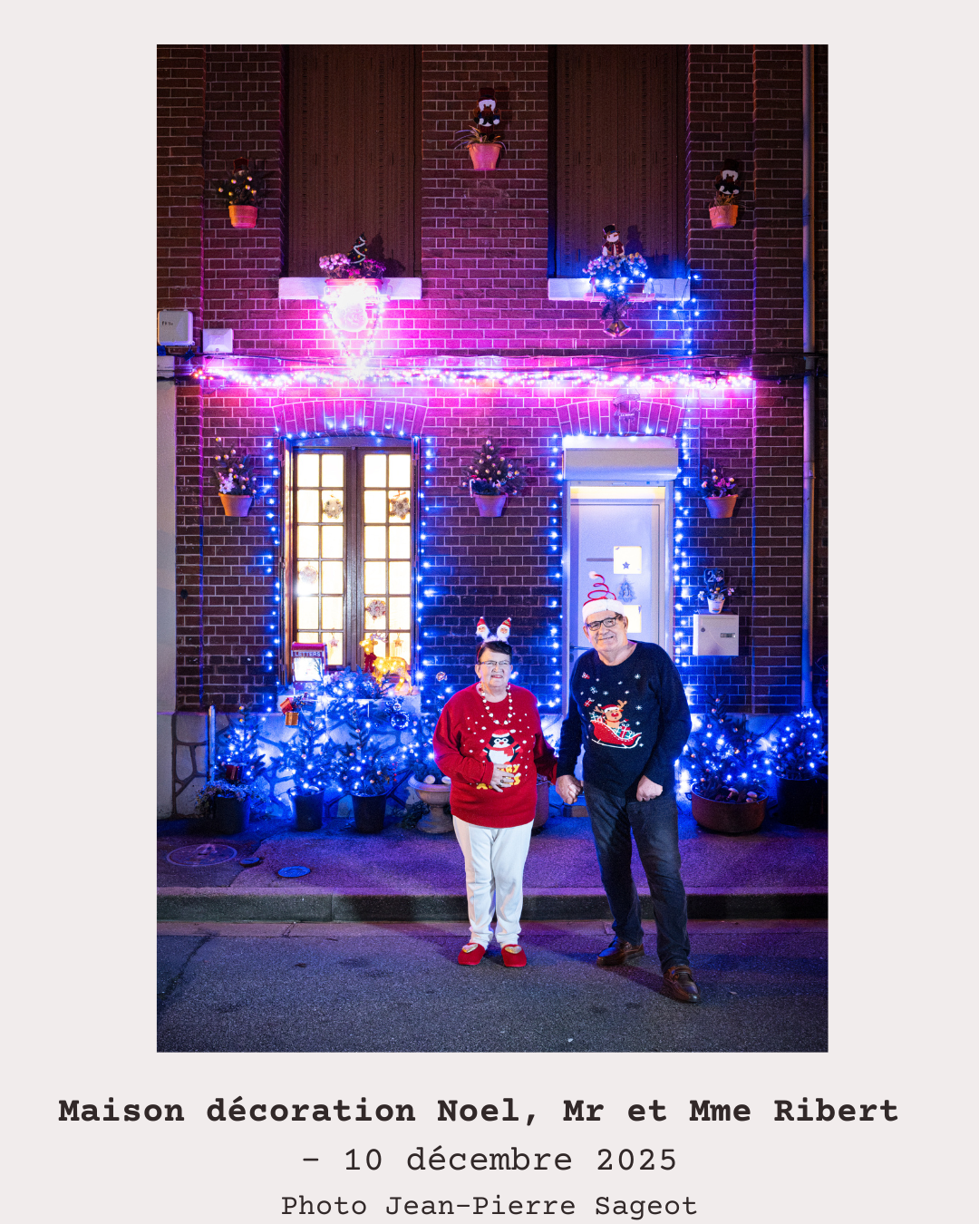 La grosse contrainte des portraits de Stéphanais devant leur maison illuminée était la plage horaire assez courte, de la tombée de la nuit, à la nuit noire, soit une heure 30 environ. Le temps d’un à deux portraits. Celui ci est mon préféré, mais il n’a pas trouvé sa place dans le Stéphanais car je l’ai réalisé moins de 36 heures avant l’envoi à l’imprimeur, la page avait déjà été maquettée, et le format vertical de cette photo aurait obligé à tout recommencer. Cette photo ne vivra que sur les réseaux sociaux.