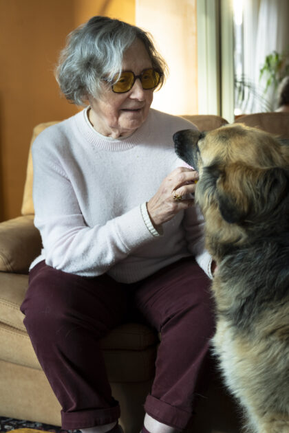 Kinésithérapeute durant sa vie professionnelle, Laurette a longtemps manqué de temps pour s’asseoir dans une salle. « Le travail me laissait peu de place pour le théâtre », confie-t-elle. Aujourd’hui à la retraite, elle rattrape le temps perdu et profite pleinement des programmations. Atteinte de dégénérescence maculaire, sa vue diminue année après année. « En vieillissant, tous les autres sens s’affaiblissent aussi. J’ai davantage besoin d’accompagnement ». Elle va souvent au CDN, plus rarement au Théâtre des arts, car il n’y a pas de place au premier rang pour sa chienne, et se réjouit que le Rive Gauche renforce son offre pour les personnes en situation de handicap. « Je ne suis pas dans la revendication, la société ne nous doit rien. J’aime seulement prendre ma place et avancer avec les autres. »