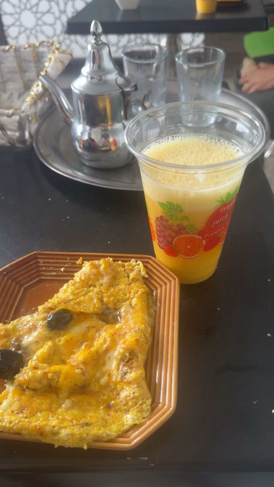 Vers 10 heures, place au petit-déjeuner, dans un petit local très simple. À peine entré, je reconnais la voix de Fairouz, la diva de la chanson arabe, en fond sonore. Le lieu est tenu par Fatima et son mari. Ici, pas de carte compliquée : ils ne font que des omelettes. J’en prends une, accompagnée d’un jus.