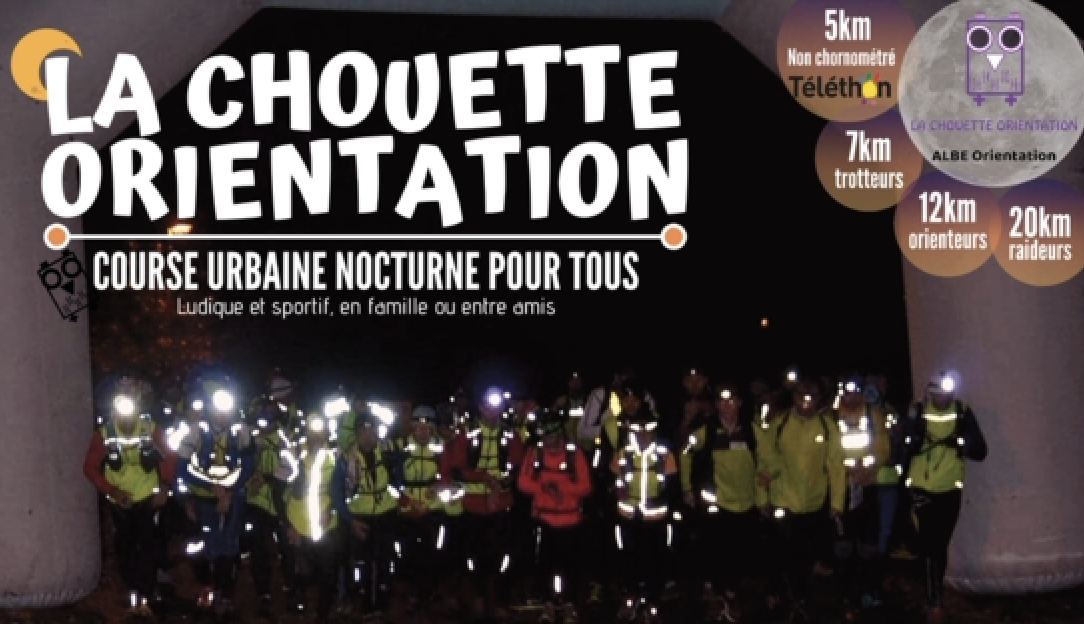 La deuxième édition de la Chouette Orientation, course d’orientation nocturne semi-urbaine organisée par l’Amicale laïque du Buquet-Elbeuf (ALBE), a lieu à Saint-Étienne-du-Rouvray et Sotteville-lèsRouen. Les participants seront accueillis à partir de 16h30 au gymnase du collège Paul-Éluard. Trois parcours sont proposés et ouvert à tous : 5, 10 et 20 km. Les équipes sont constituées de 2 à 4 coureurs. Cette année, l’ALBE orientation propose en plus un circuit loisir et non chronométré de 5 km dont les bénéfices récoltés seront reversés au Téléthon.
